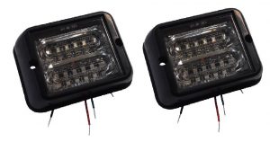 Die Lampen haben transparente Linsen, sie leuchten jedoch in Orange oder Blau.